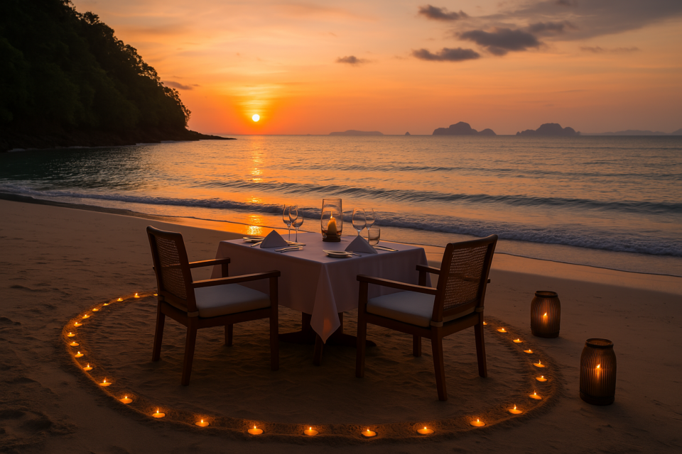 Un’esperienza gastronomica su misura, con chef dedicato e menù personalizzato, tra candele, onde e cielo dorato.